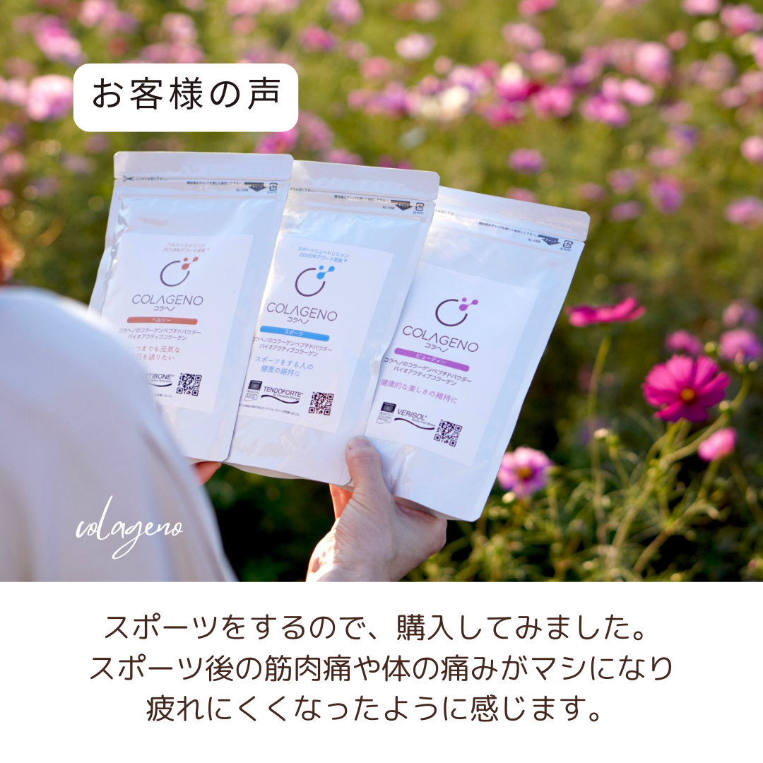 コラーゲンペプチドの粉末タイプ。スポーツをする人の健康維持に役立つ、ドイツGELITA社製の「テンドフォーティ」を原料としています。牛由来のコラーゲンペプチドが原料となっており、粒子が細かく溶けやすいので、様々な用途にご使用いただけます。特に乳製品との相性が良く、くせや匂いがほとんどないためお飲み物やお料理に加えても手軽に美味しくいただけます。