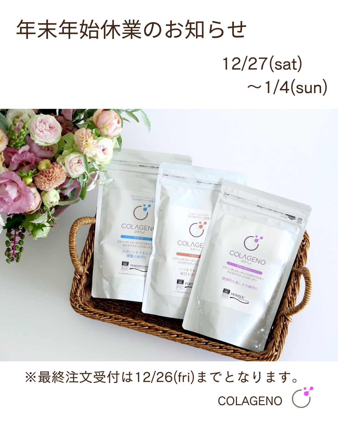 コラヘノでは誠に勝手ながら、以下の期間を年末年始休業とさせていただきます。