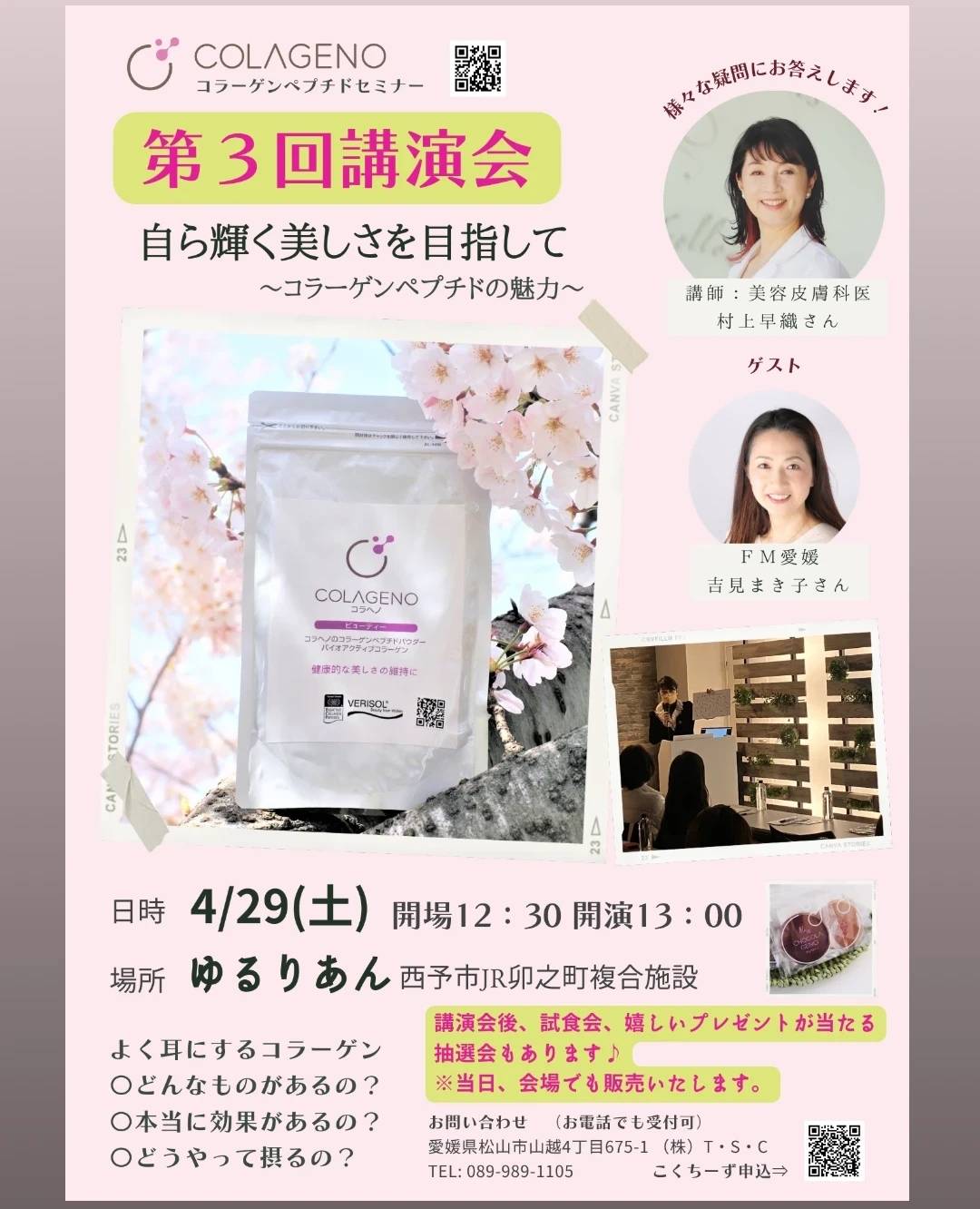美容皮膚科医:村上早織さんによる第3回コラーゲンペプチドの講演会が決定いたしました!